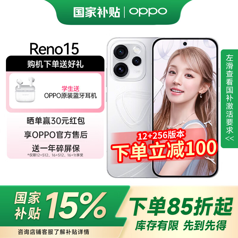 OPPO【国家补贴15%】OPPO Reno15 全新影像手机 2亿超清像素 小直屏 5G智能 学生游戏 AI拍照手机OPPO 星光蝴蝶结 12GB+256GB 官方标配【全国联保】