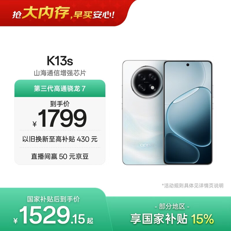 OPPO K13s 12GB+256GB 超能白 强悍更流畅 第三代骁龙7 抗摔耐磨 防水防尘 游戏千元新款手机 国家补贴