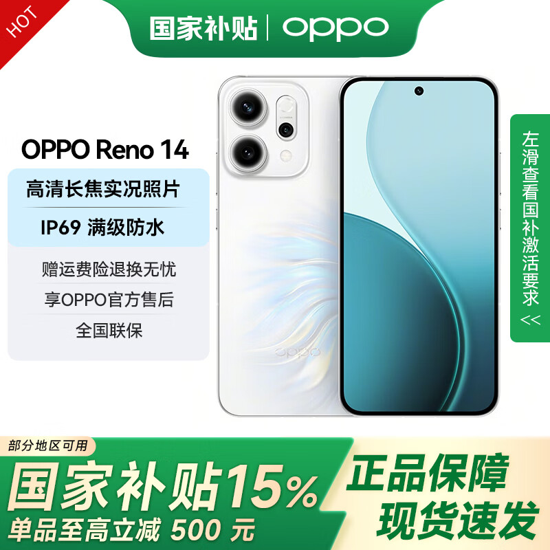 【阿里自营 政府补贴】OPPO Reno14 日月光 高清长焦实况潮流配色 满级防水 学生游戏拍照 5G全网通手机