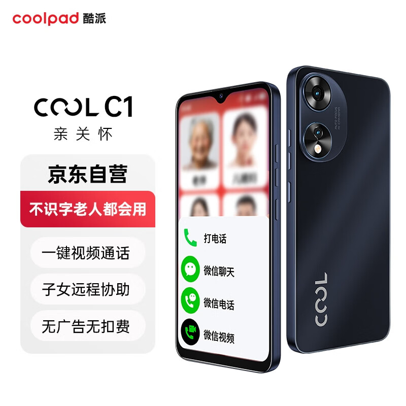 酷派(Coolpad)C1 不识字老人都会用 纯净无广告老人机一键微信视频 来电自动接听 远程协助防走丢手机 磨砂黑