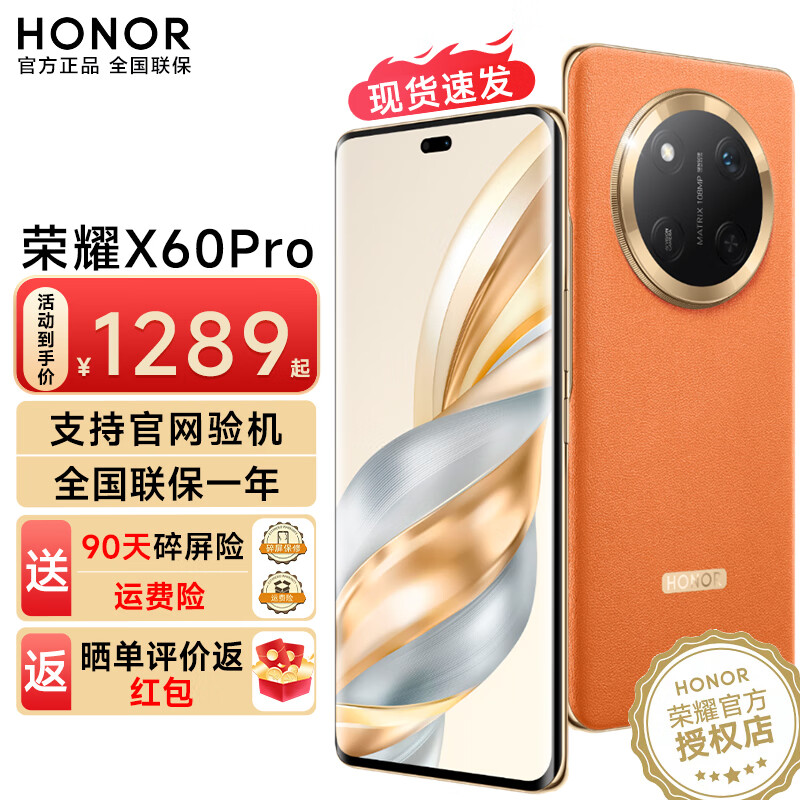 荣耀(HONOR)荣耀x60pro 新品5G手机 十面抗摔防水耐磨 6600mAh青海湖电池 荣耀绿洲护眼屏 燃橙色 8GB+256GB 官方标配