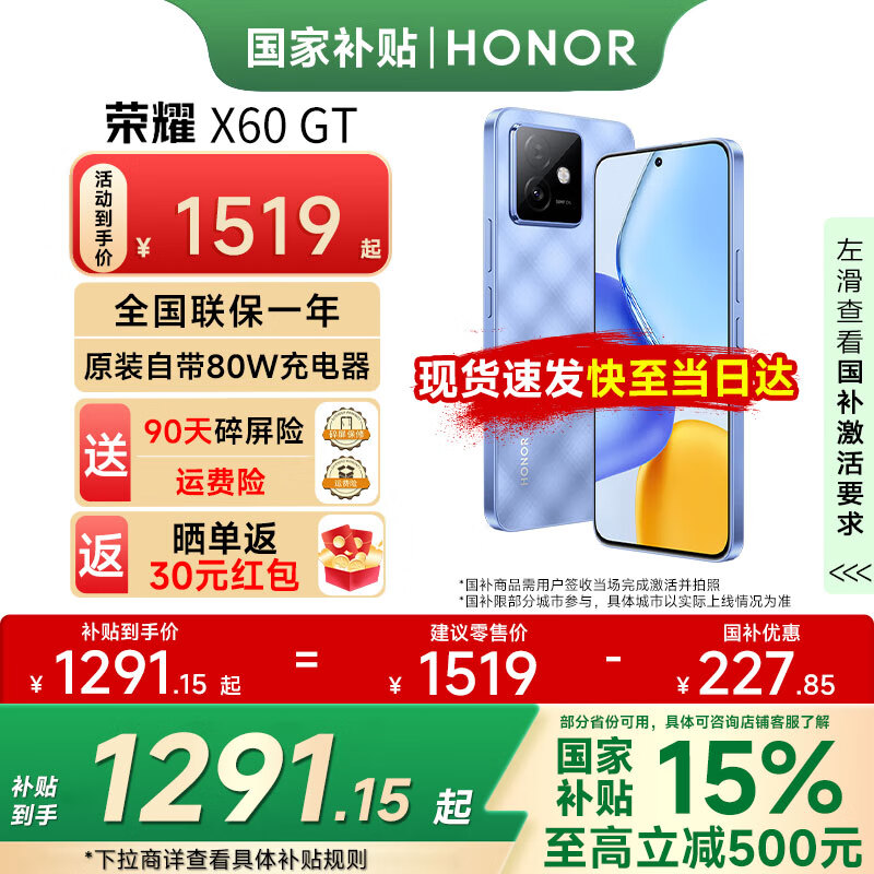 荣耀X60GT【国家补贴】骁龙旗舰芯片 荣耀绿洲护眼屏 6300mAh青海湖电池 5G新品手机 钛影蓝 12GB+256GB 官方标配