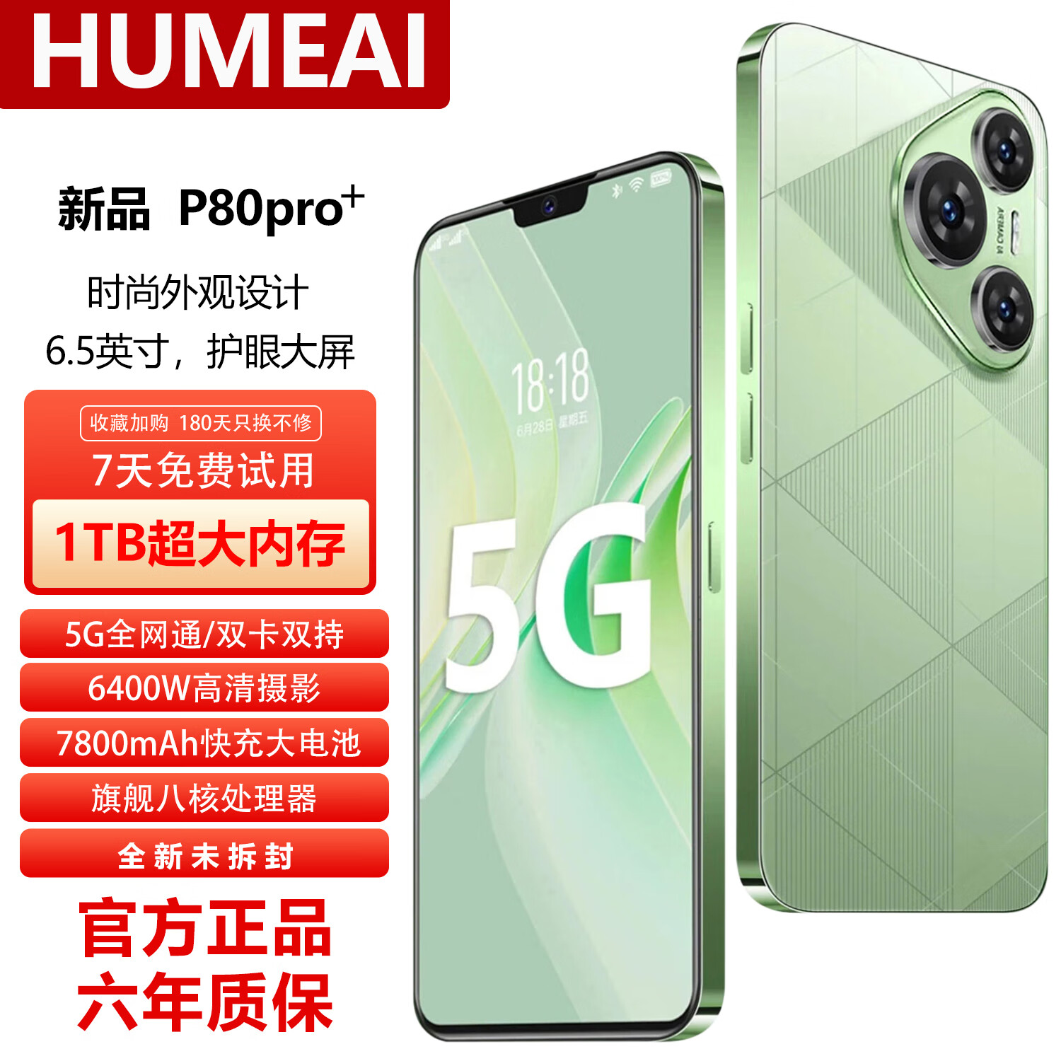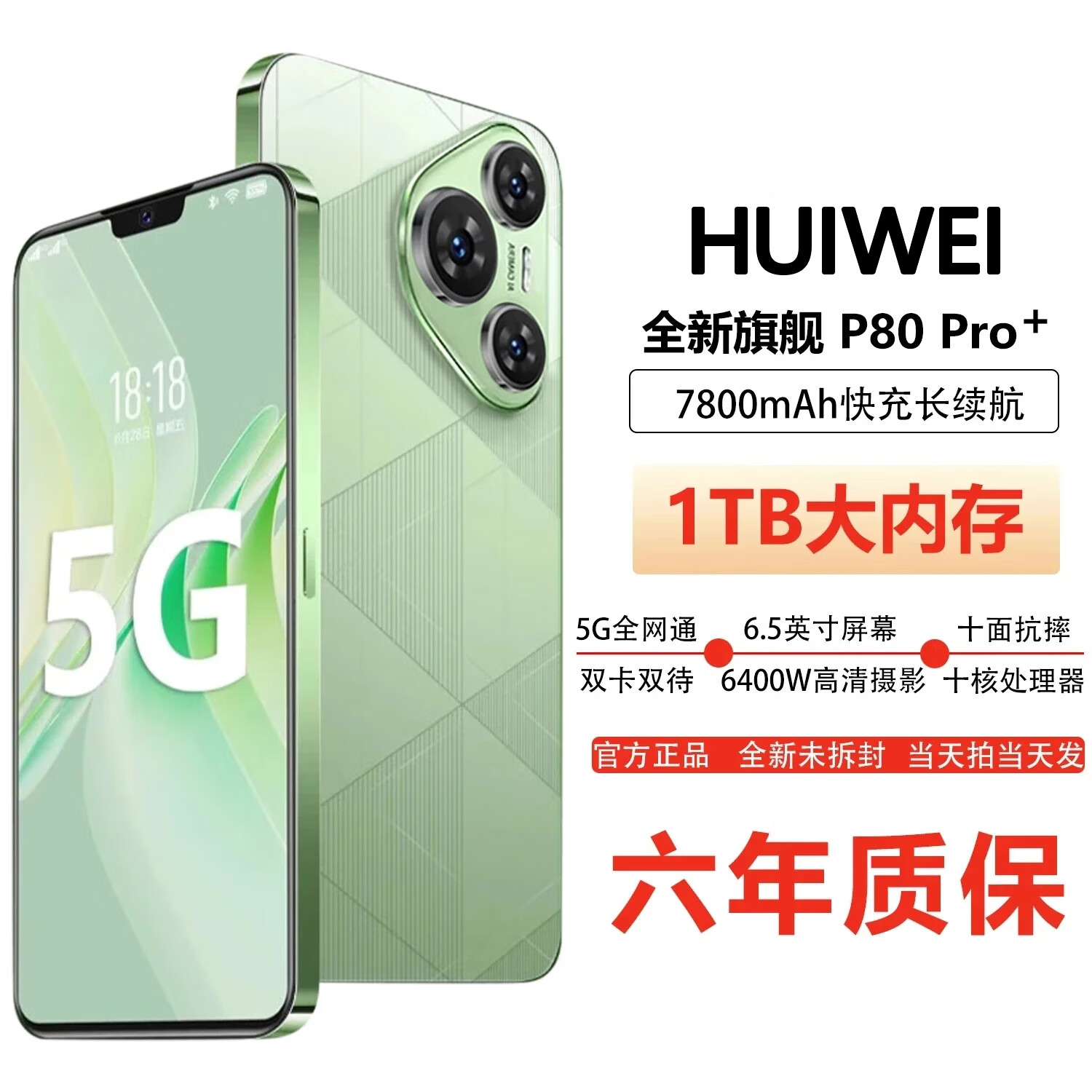HUIWEI手机1TB大内存2025新品7800mAh快充长续航骁龙888电竞6400W高清拍照十面抗摔质保6年 香颂绿 16G+1TB(1024G)