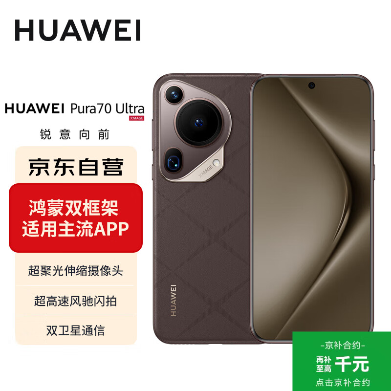 华为(HUAWEI)Pura70Ultra 摩卡棕 12GB+512GB 超聚光伸缩摄像头 超高速风驰闪拍华为P70智能手机