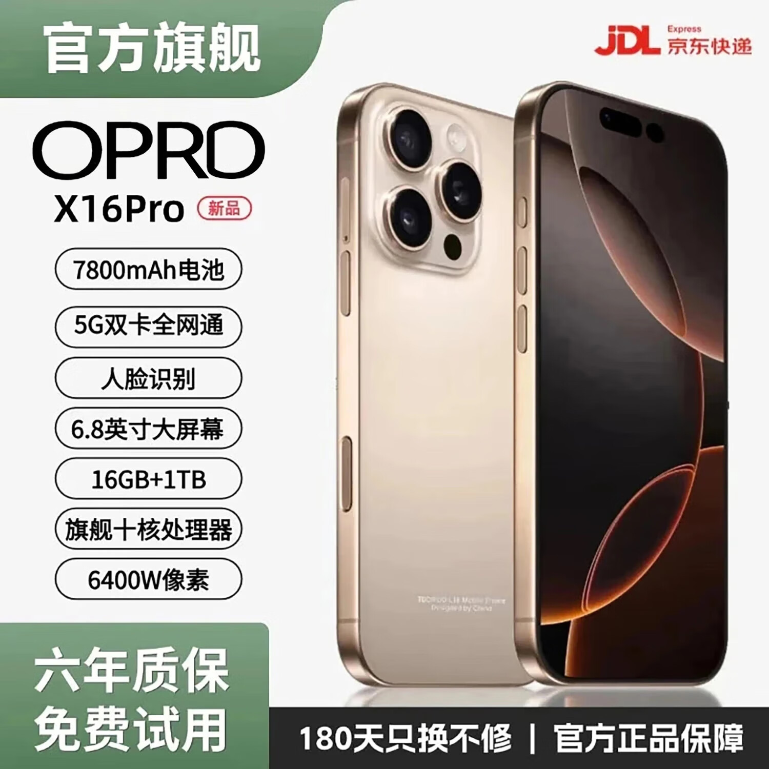 OPRDX16Pro手机2025新品6年质保5G双卡全网通1TB大内存7800mAh快充大电池抗摔防水高清护眼拍照 钛沙金 16G运行+1024G(1TB)内存