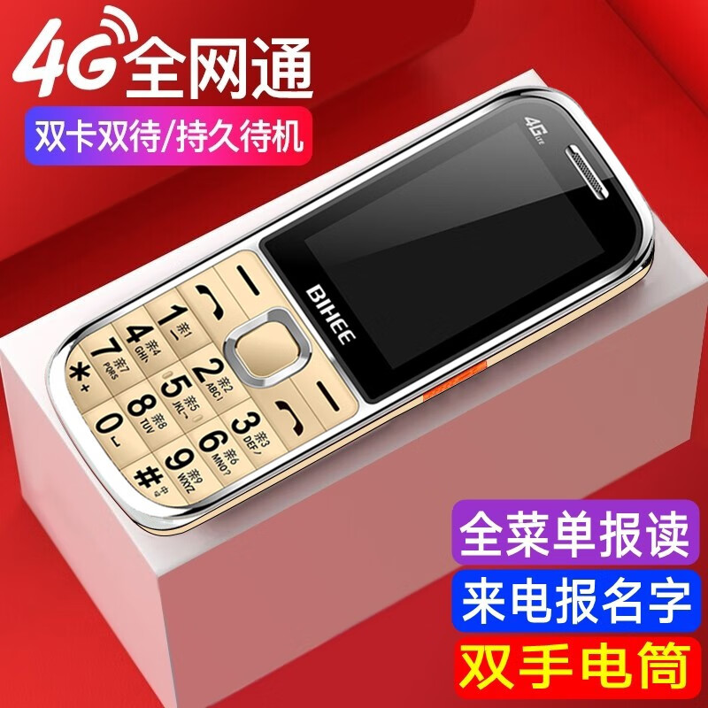BIHEE 百合A35 老人手机 4G全网通 移动联通电信版 超长待机 双卡双待 学生老年手机 功能机 金色(4G全网通版)