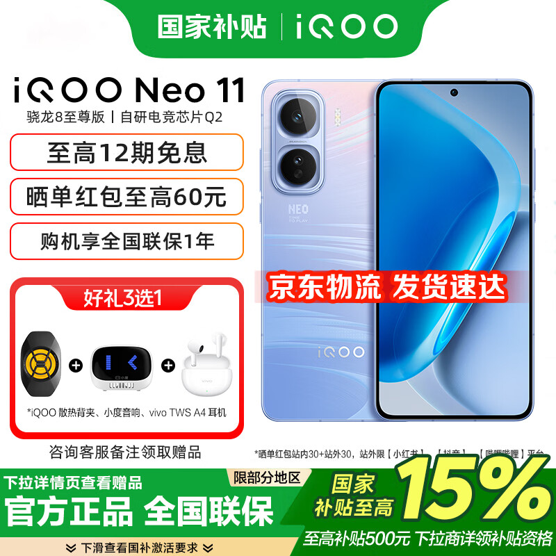 vivo iQOO Neo11 国家补贴 2K 144Hz珠峰屏 骁龙8至尊版 iqooneo11 学生游戏手机 驰光白 12GB 256GB 疾影黑 12GB+512GB 官方标配