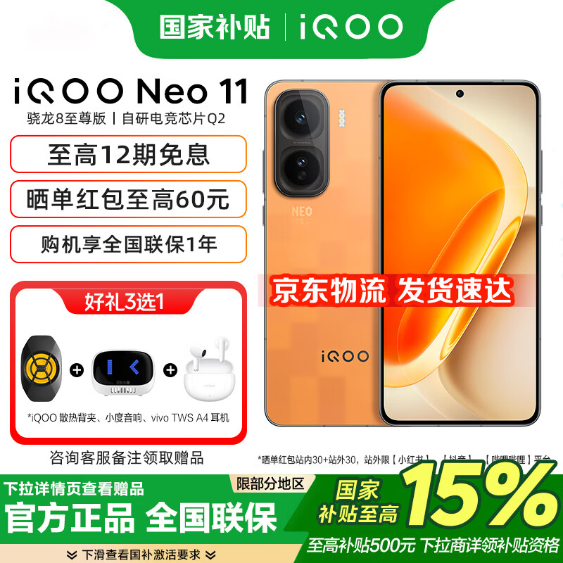 vivo iQOO Neo11 国家补贴 2K 144Hz珠峰屏 骁龙8至尊版 iqooneo11 学生游戏手机 驰光白 12GB 256GB 像素方橙 12GB+512GB 官方标配