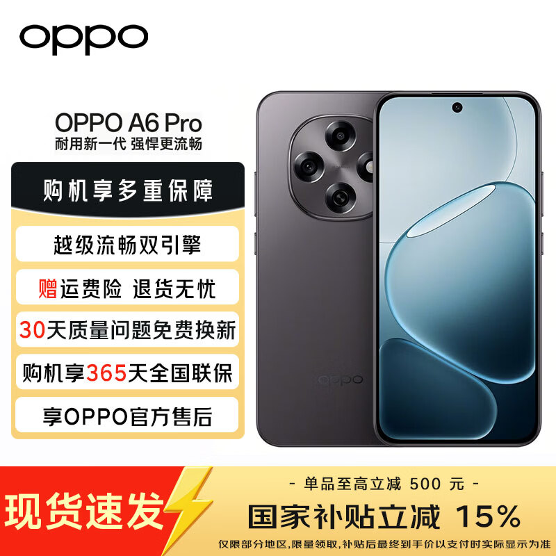 OPPO【国家补贴减15%】OPPO A6 Pro 越级流畅双引擎 7000mAh大电池 a6 pro IP69防水 5G耐用新手机 墨玉黑 16GB+512GB