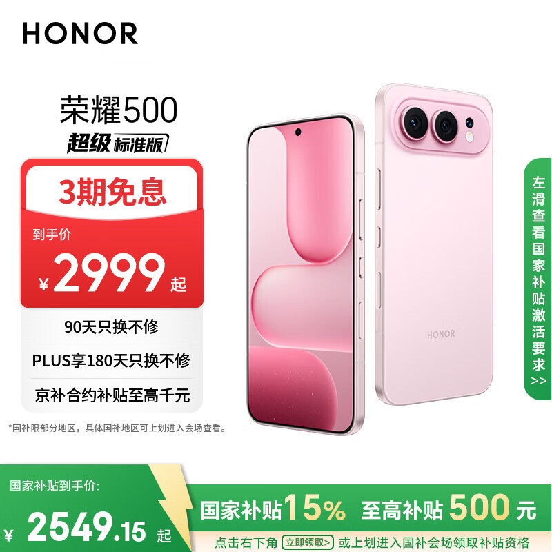 荣耀500焕新版 超级标准版 肖战同款 2亿人像全能实况 青海湖电池 5G AI 学生 拍照手机 12+256星光粉
