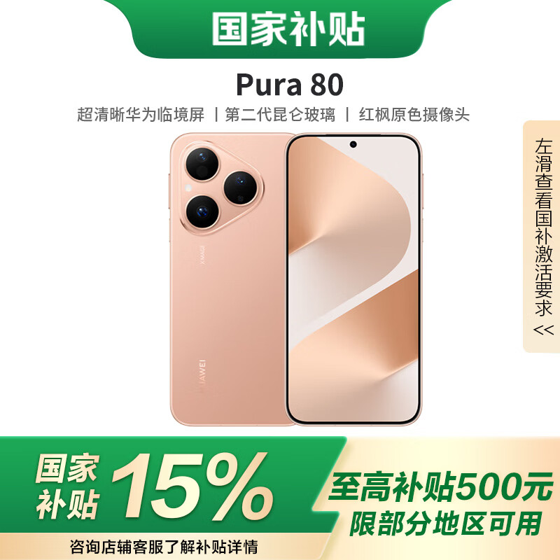HUAWEI华为pura80【国家补贴15%】 新品鸿蒙手机 丝绒金 12GB+256GB 官方标配