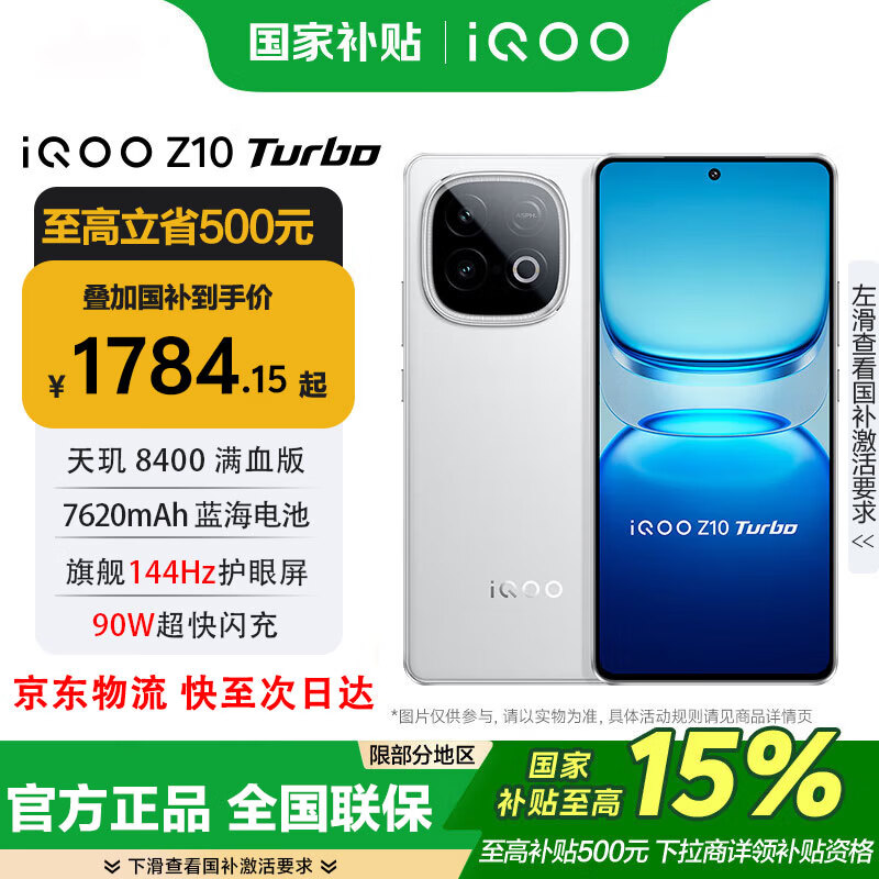 vivo iQOO Z10 Turbo 天玑8400满血版 旗舰144Hz光域护眼屏幕 90w超快闪充 国家补贴 学生电竞游戏手机 云海白 12+256GB 官方标配