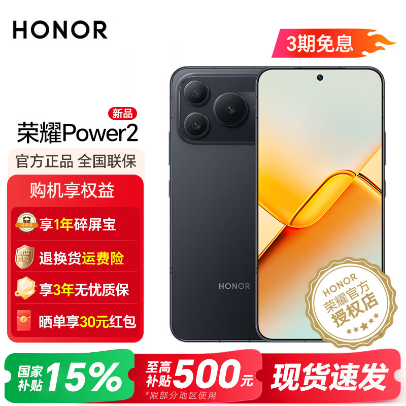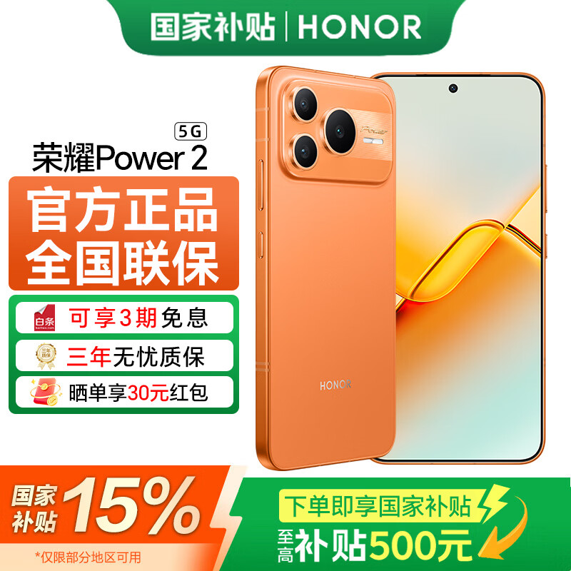 荣耀Power2 【国家补贴15%】 新品5G手机 10080mAh青海湖电池 电梯信号王 天玑8500 Elite 手机荣耀 旭日橙 12GB+256GB 官方标配