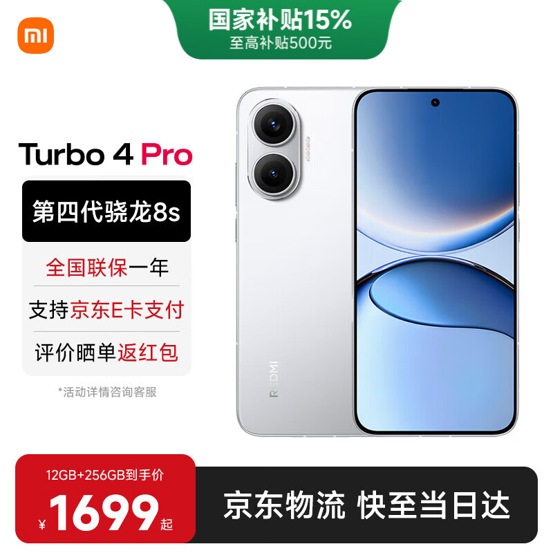 小米(MI)REDMI 红米Turbo4 Pro 国家补贴 第四代骁龙8s 7550mAh长续航 IP68防水 小米红米新品5G手机 白色 12GB+256GB 【官方标配】