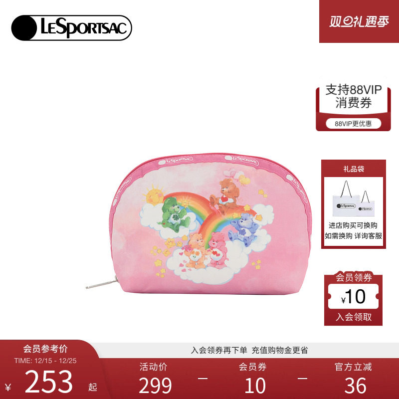 LeSportsac乐播诗新款爱心小熊联名粉色梦幻手机包化妆收纳手拿包