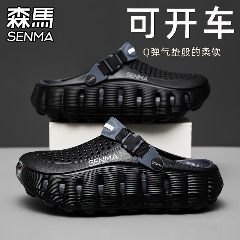 森馬拖鞋男士夏季新款情侣居家防滑软底包头拖外穿开车两用运动洞洞鞋 黑色 42-43