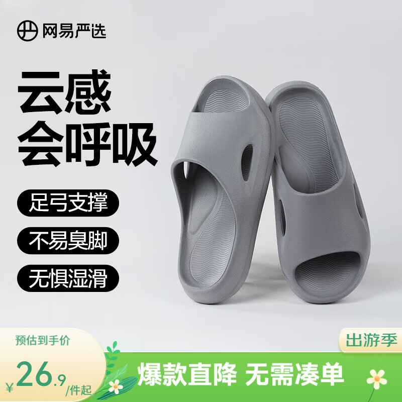 网易严选 EVA云步高弹防滑居家拖鞋夏季情侣居家浴室家用不臭脚男女凉拖 26升级款玄铁灰*男 41-42