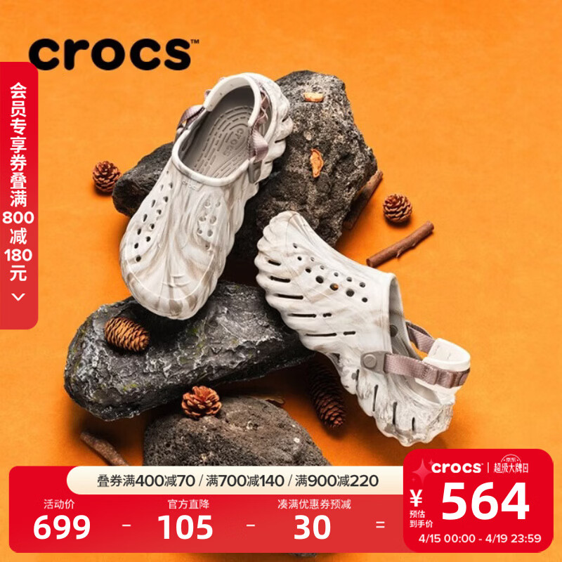 卡骆驰(CROCS)波波大理石纹洞洞鞋舒适轻便男沙滩鞋包头拖鞋女鞋|208454 月光灰/彩色-1NL 41 /42(260mm)