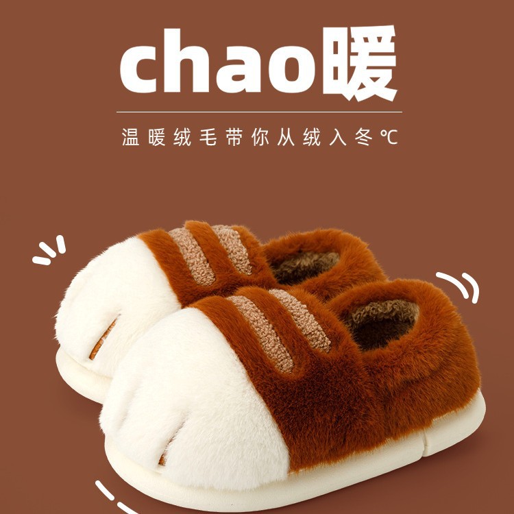 猫爪棉拖鞋冬季室内家居厚底防滑保暖加绒情侣毛绒半包跟亲子棉鞋