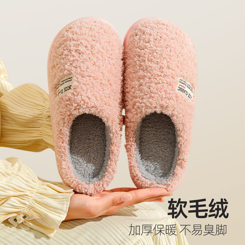 轻臣加绒时尚包头家居男室内外穿厚底保暖防滑情侣毛毛棉拖鞋女
