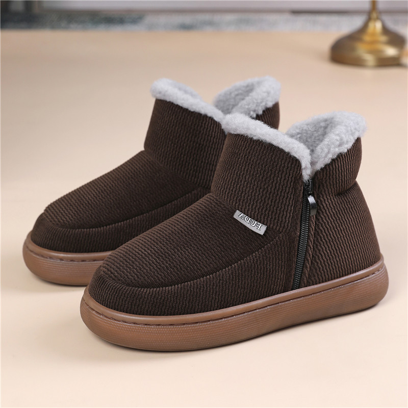冬季高帮男士加厚毛绒保暖棉鞋中老年人居家外穿牛筋厚底女棉拖鞋