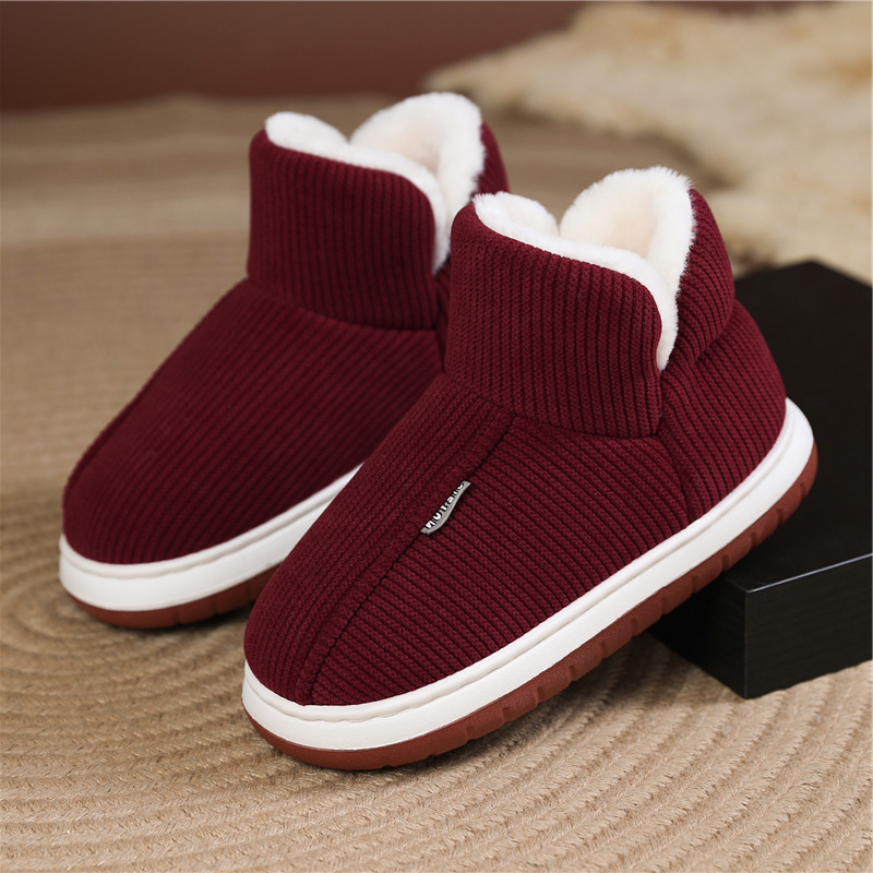 冬季高帮男女款加厚毛绒保暖棉鞋中老年人家居防滑厚底包跟棉拖鞋