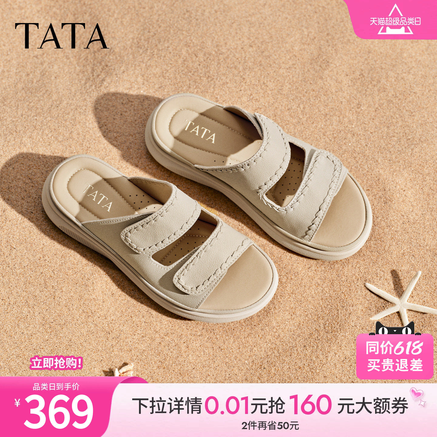 TATA他她女鞋母亲节夏季款一字拖简约百搭女休闲外穿拖鞋CUA02BT6