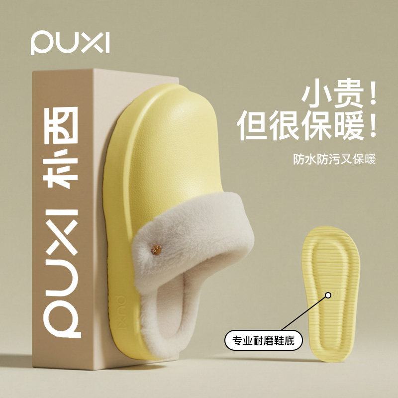 朴西女士棉拖鞋秋冬季居家保暖室内静音防滑家用不沾毛情侣棉鞋男
