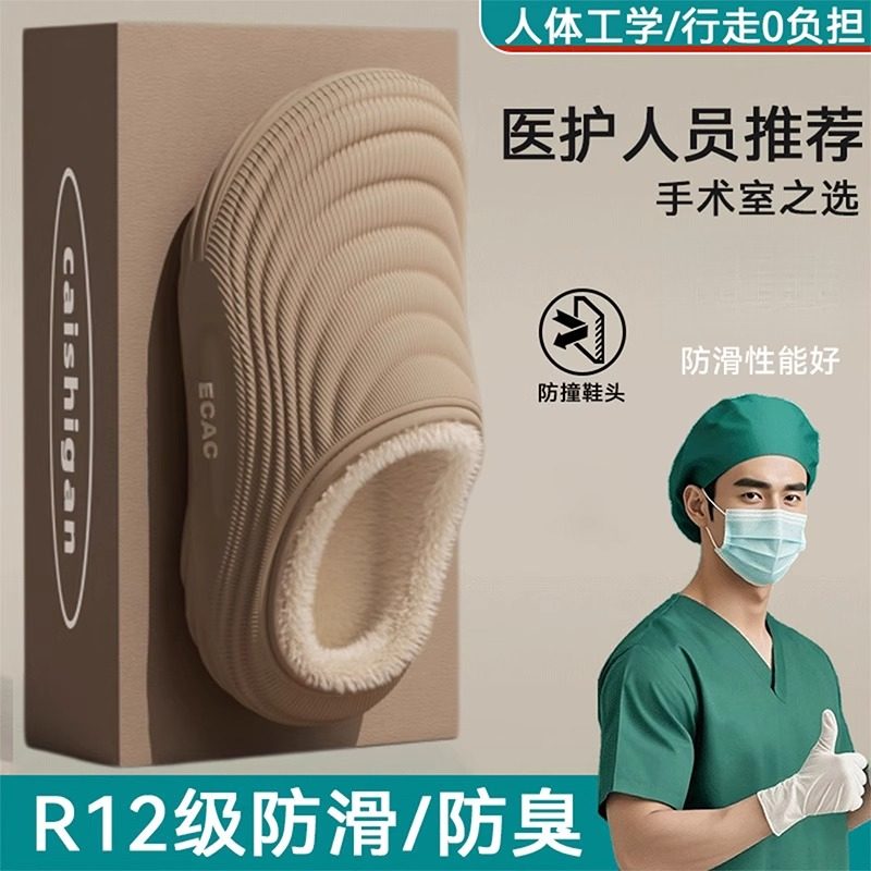 手术室防水棉拖鞋女冬包跟室内家居医生医护防滑厚底棉鞋男士秋冬