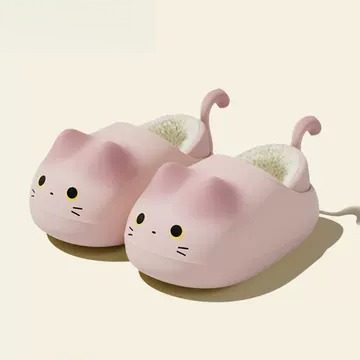 优遇家 可爱猫耳带尾防水棉拖鞋女秋冬季室内卡通萝莉女生防滑EVA