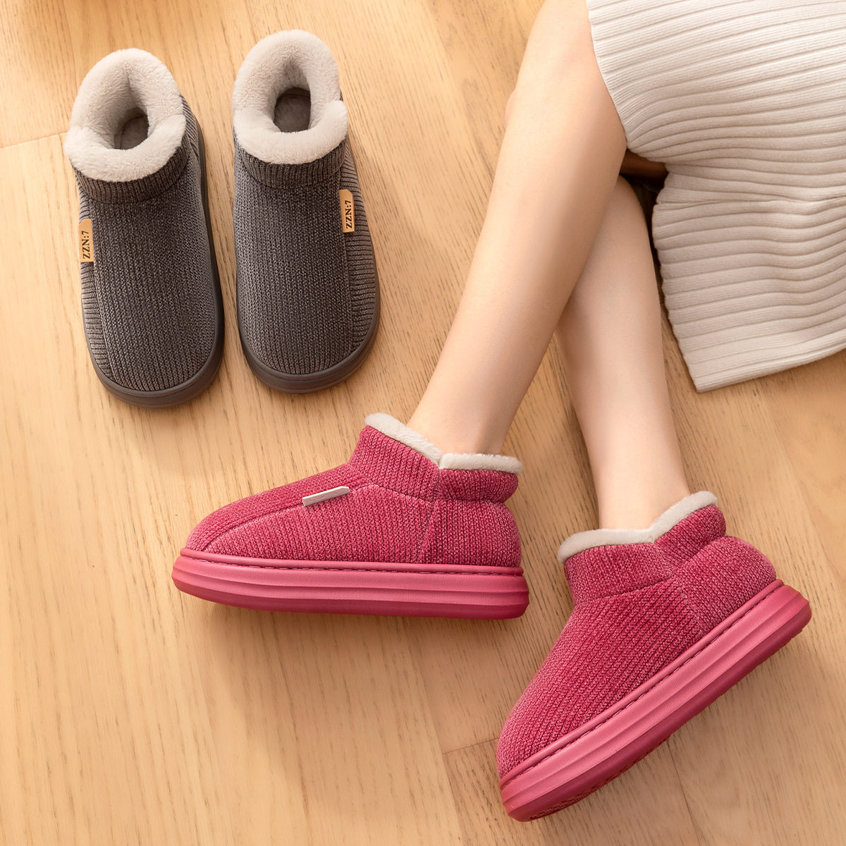 窠窠良品2025新款居家室内拖鞋冬季女防滑保暖毛绒地板棉拖鞋女