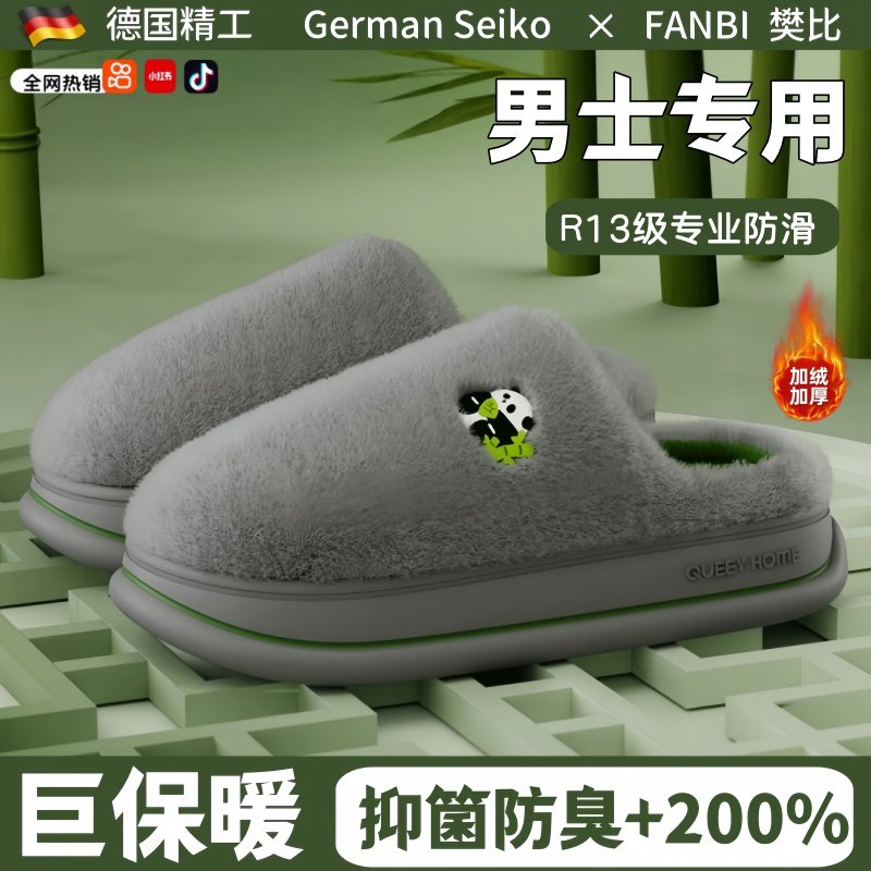德国踩屎感棉拖鞋男士秋冬季2025新款室内家居毛绒保暖防滑拖冬天