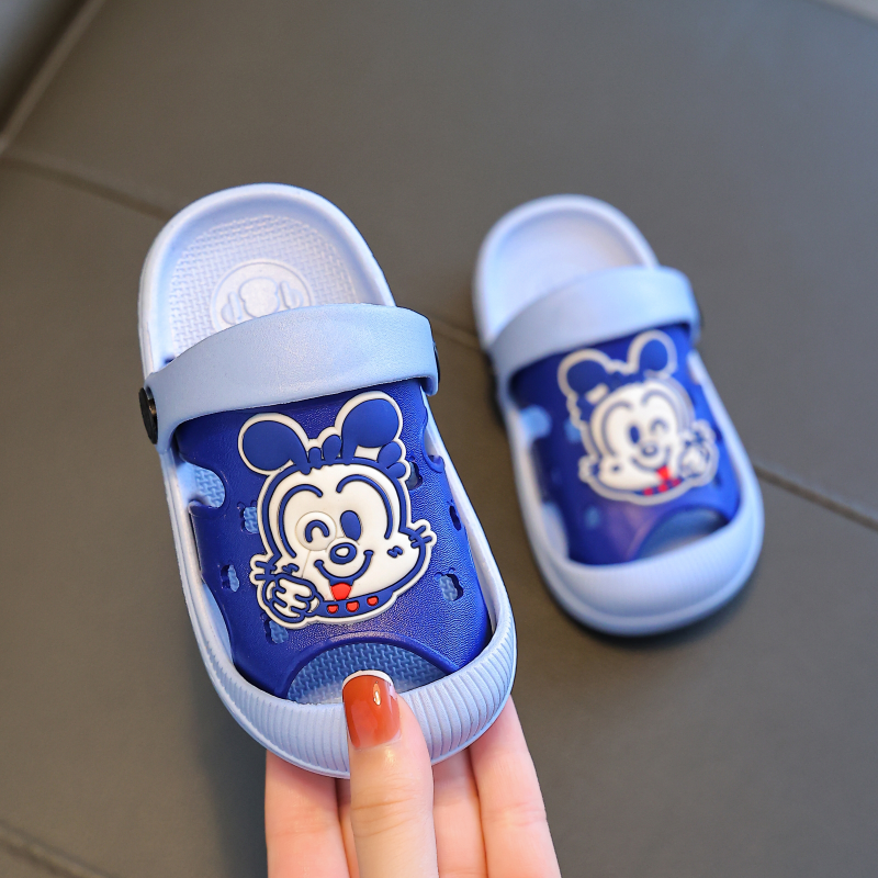 女童卡通可爱蓝色洞洞鞋包头儿童户外夏款凉拖鞋外穿防滑小孩宝宝