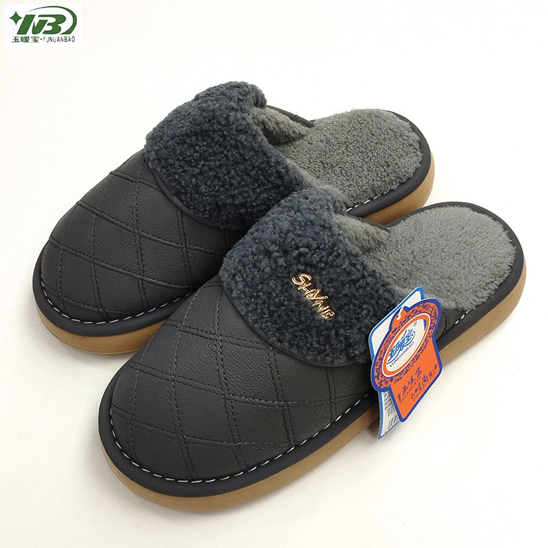 玉暖宝防水棉拖鞋秋冬季情侣PU皮软底防滑保暖舒适高品质男棉拖鞋
