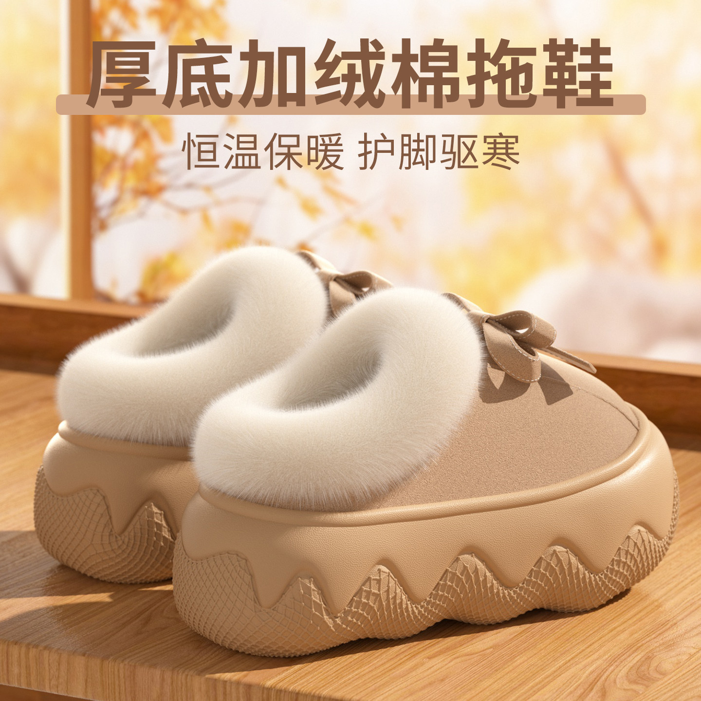 厚底棉拖鞋女款2025新款秋冬季室内外穿防滑小个子雪地包跟棉鞋女