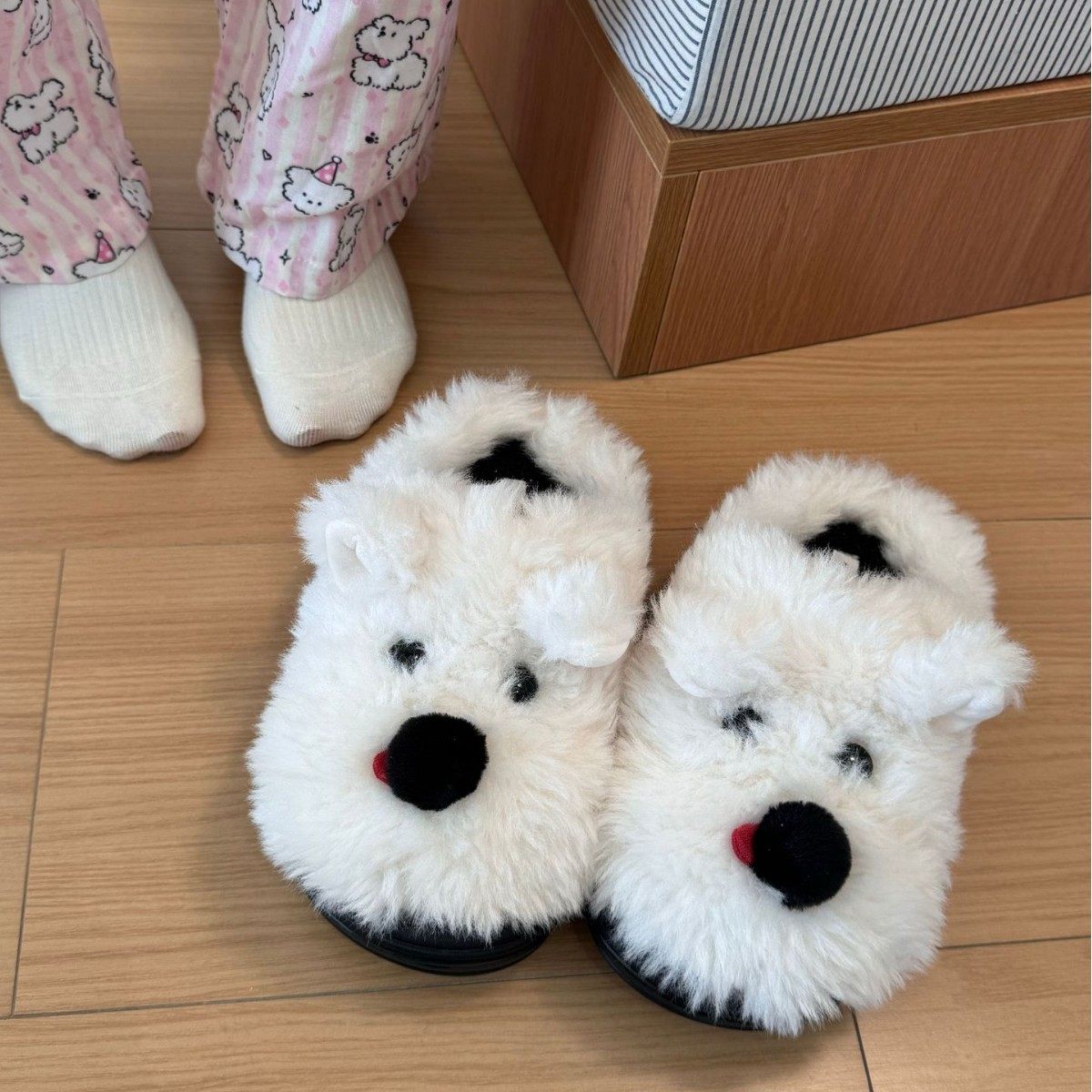 跨境可爱柯基屁股毛绒拖鞋加厚保暖柯基狗屁股家居地板防滑棉鞋