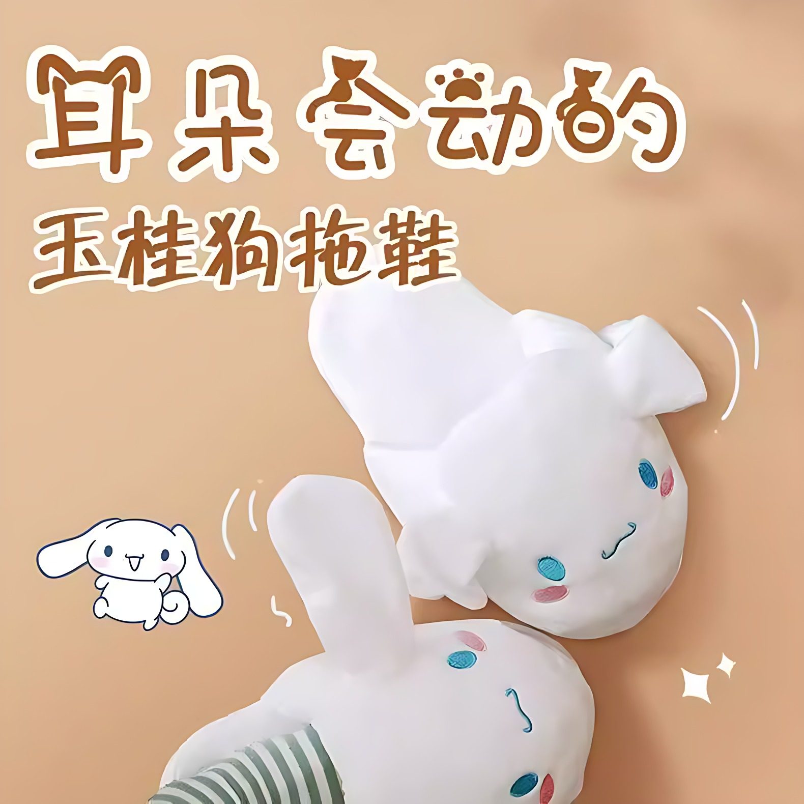 玉桂狗耳朵会动玉桂狗冬天棉拖鞋卡通拖鞋日系百搭款式兔耳朵ins