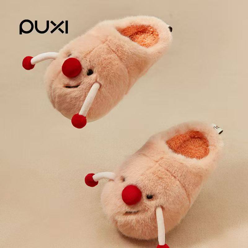 朴西红鼻子儿童棉拖鞋女孩家居室内保暖防滑冬季可爱宝宝拖鞋女童