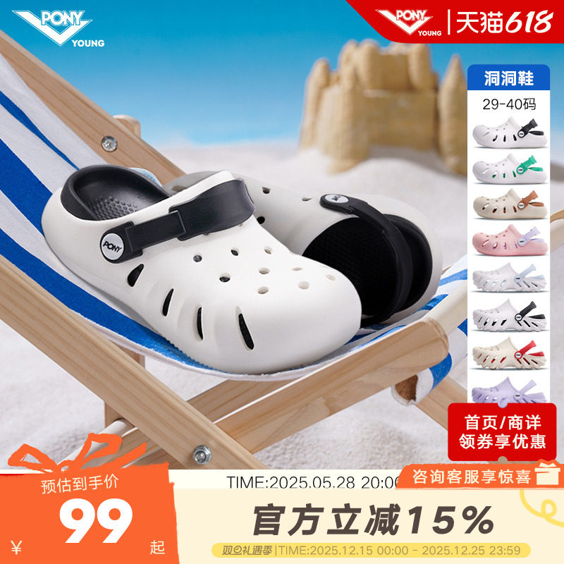 pony童鞋儿童洞洞鞋2025夏季新款男童女童运动凉鞋拖鞋女孩涉水鞋