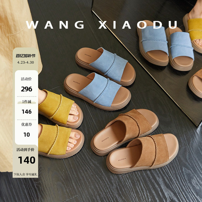 【王小毒】晴空画布○牛反绒一字拖女2026夏季多巴胺厚底沙滩拖鞋