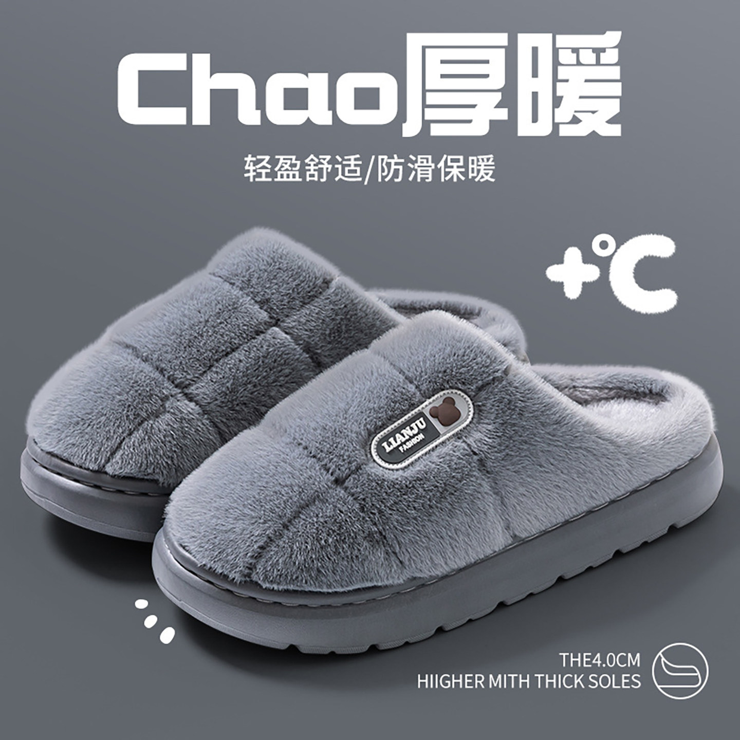 大码棉拖鞋男款2025新款家居室内冬季加绒保暖毛绒加厚情侣防滑女
