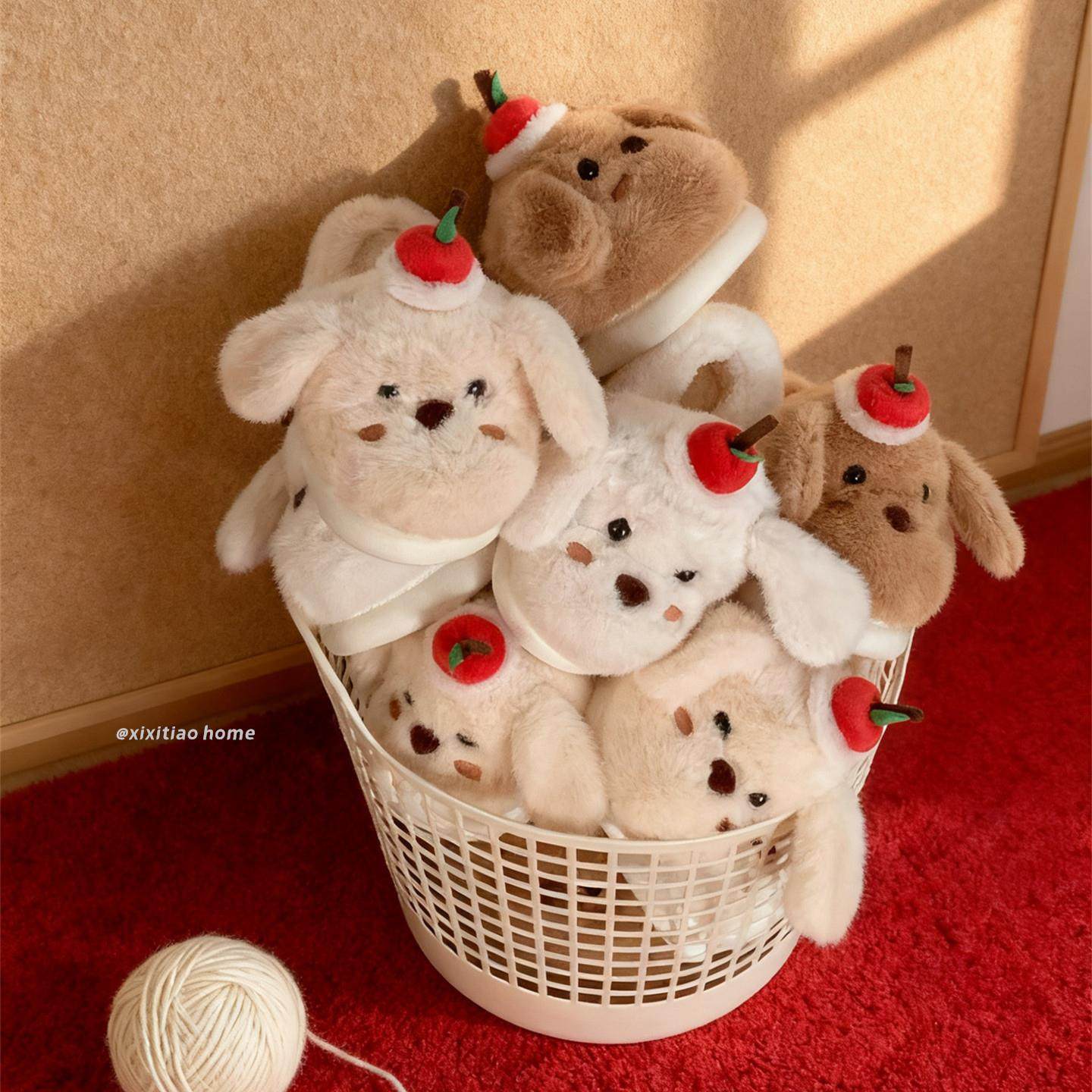 棉拖鞋女网红冬季时尚居家防滑少女心ins可爱苹果小狗包跟毛毛鞋