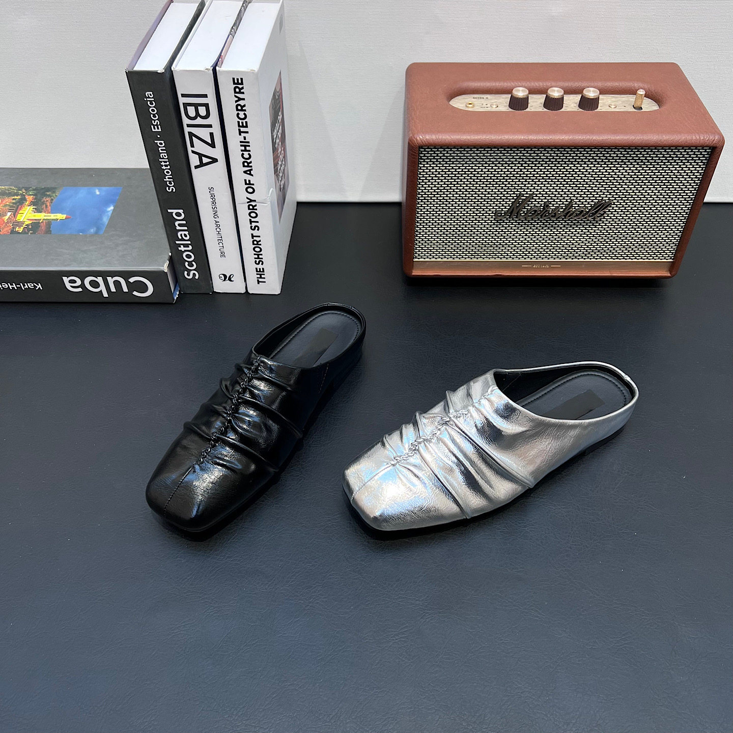 阿么手工女鞋气质银色包头半拖鞋女夏季优雅好看一字带穆勒凉鞋女