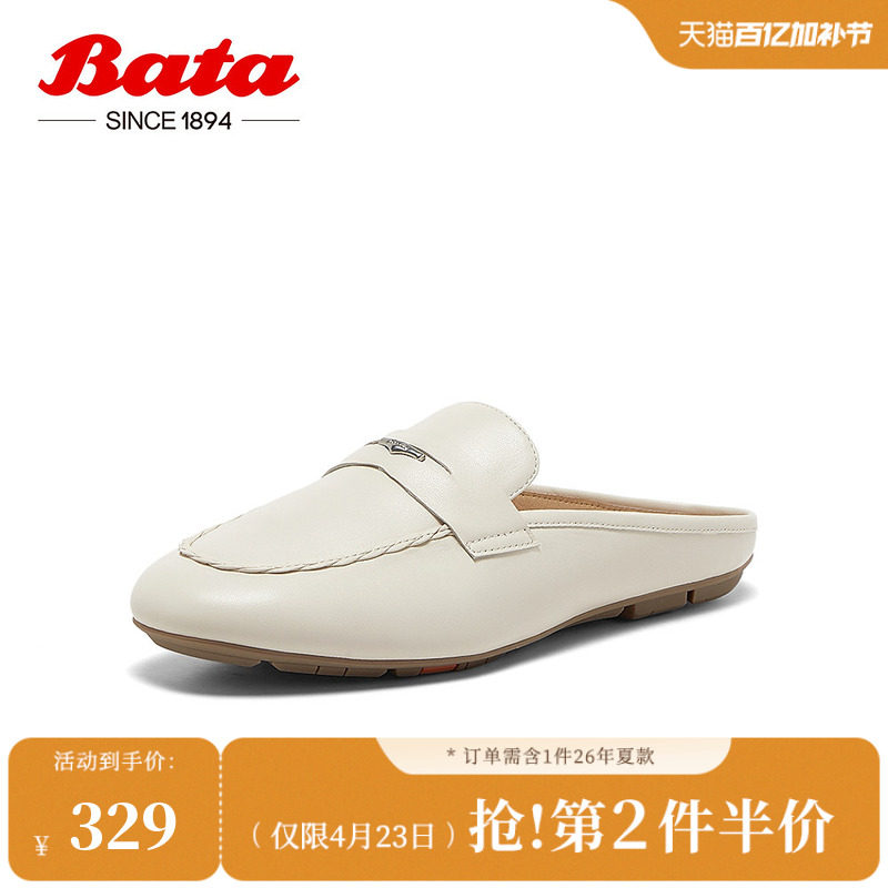 Bata穆勒拖鞋女商场新款英伦羊皮软底一脚蹬包头拖AMV49AH5