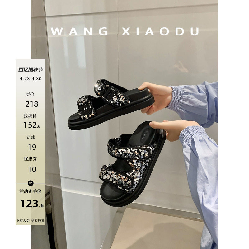 【王小毒】星河璀璨○亮片厚底拖鞋女夏季外穿魔术贴凉拖女勃肯拖