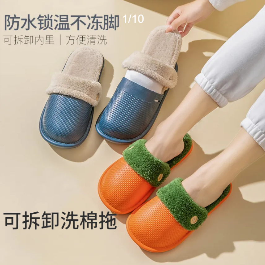 可拆卸手术室棉拖鞋女士冬季2025新款家居室内防水情侣毛棉拖男