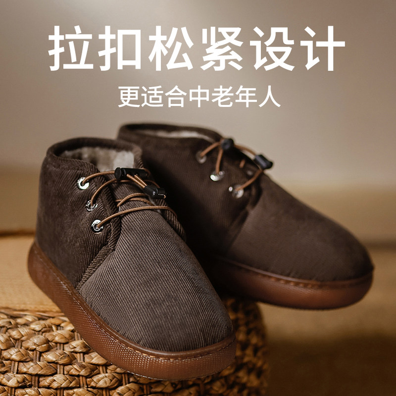2025新款秋冬中老年人保暖包跟棉鞋加绒厚底防滑居家用外穿棉拖鞋