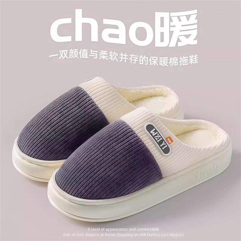 冬季情侣棉拖鞋适合居家外穿加厚防滑时尚百搭新款厚底保暖棉拖