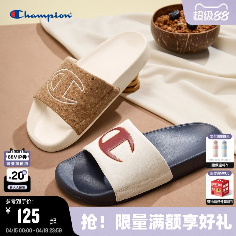 Champion冠军情侣拖鞋春夏女外穿一字拖沙滩鞋撞色半拖男Slide C