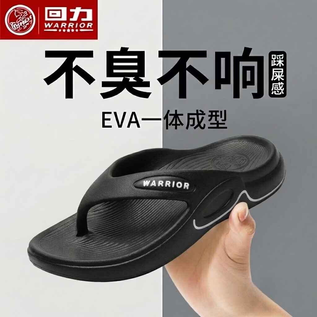 回力人字拖鞋男士居家防滑浴室拖鞋外穿耐磨eva踩屎感沙滩凉鞋 黑色